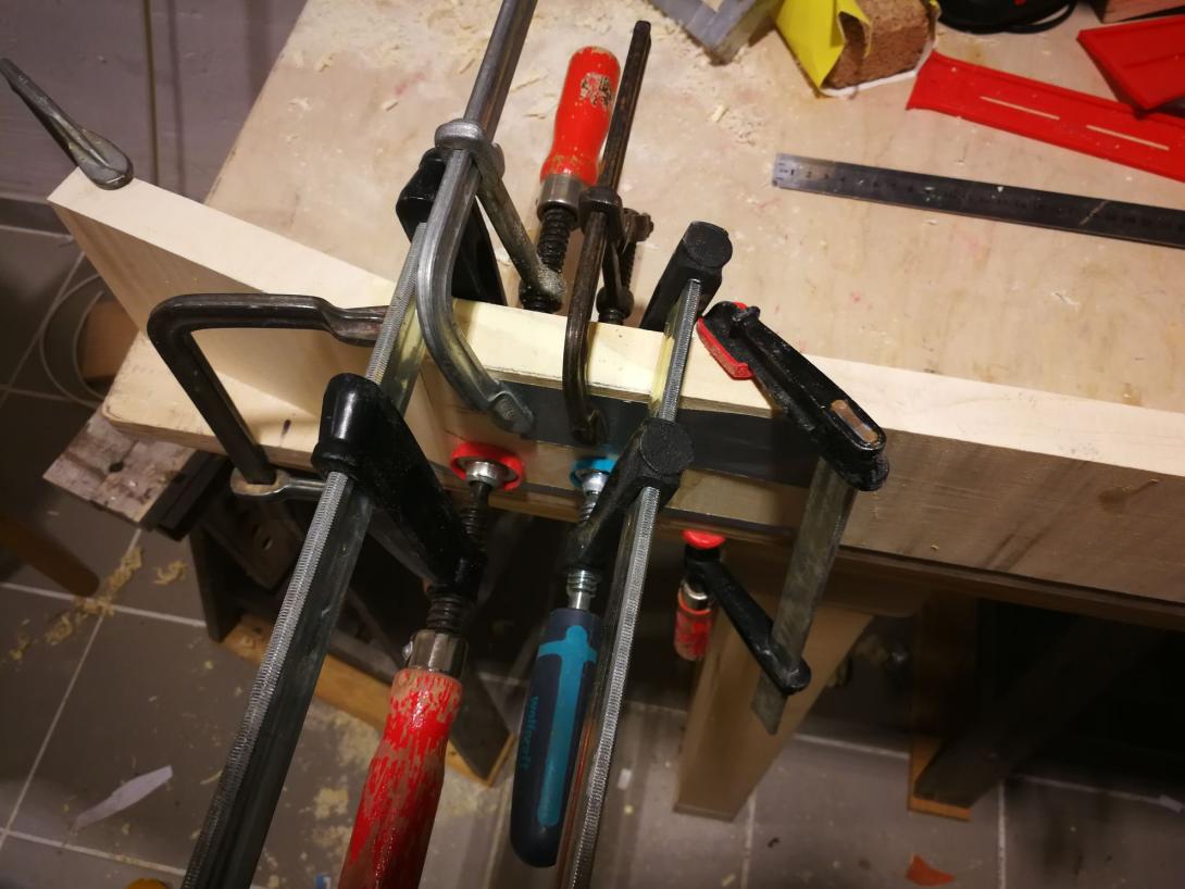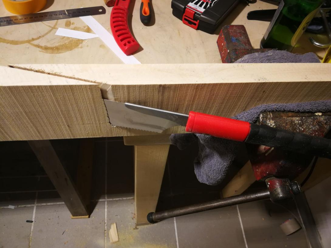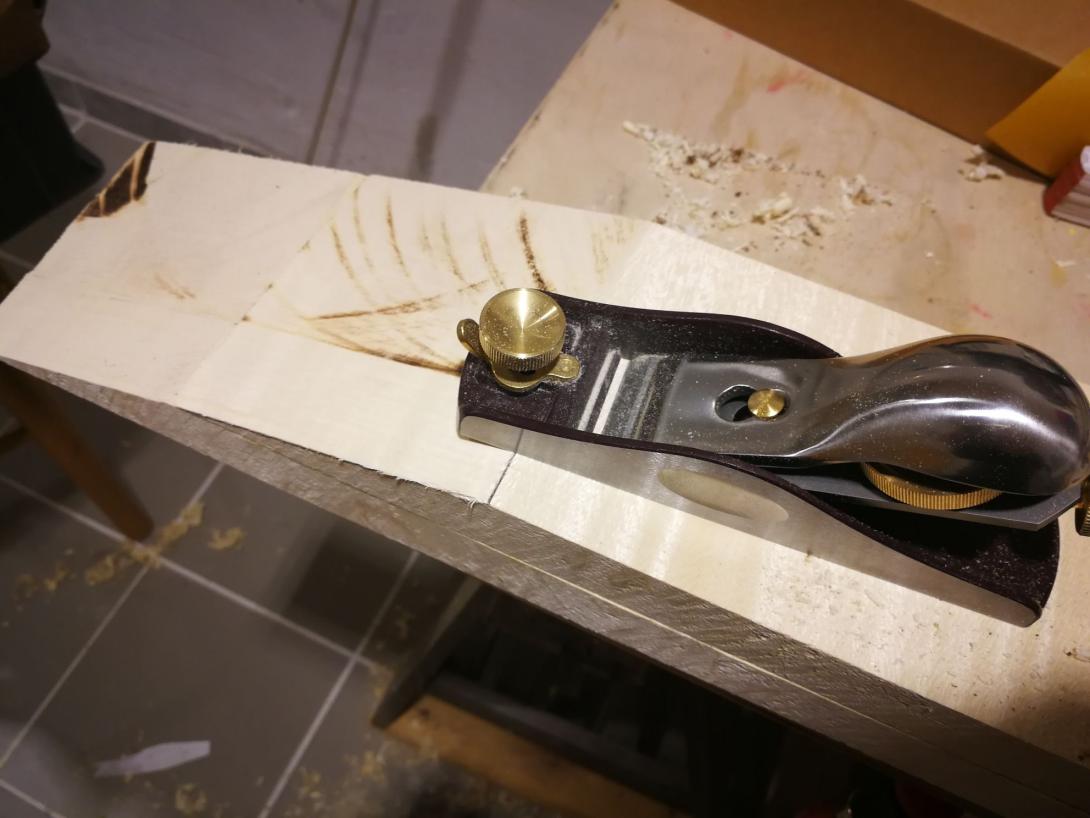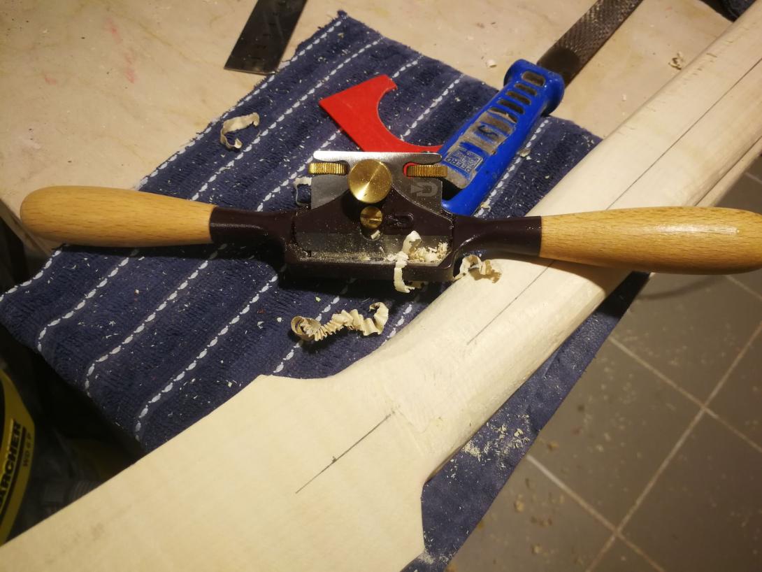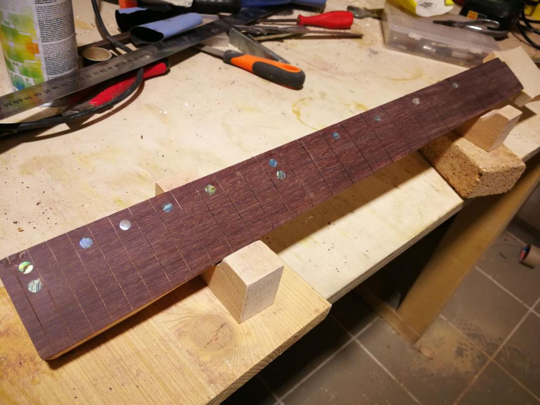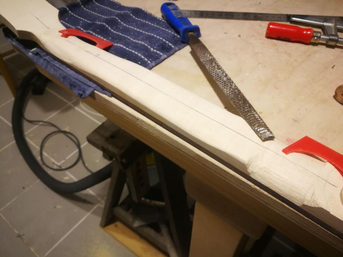 Zur Beruhigung habe ich parallel einen Gitarrenhals aus einem Fichtenbrett gebaut, das hat sich total gelohnt da viele Schritte geübt waren als es ernst wurde.